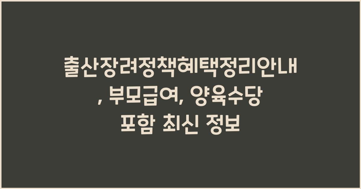 최근 출산장려정책에 대한 정보가 많이 변하고 있습니다. 부모급여와 양육수당을 포함한 다양한 혜택을 정리하여, 이를 통해 부모님들이 충분한 도움을 받을 수 있도록 돕고자 합니다.📋 출산장려정책 혜택 정리안내출산장려정책은 많은 국민들이 자녀를 가지려 할 만큼 큰 혜택을 제공합니다. 우선, 부모급여는 출산 후 일정 기간 동안 부모에게 지급되는 금액으로, 이는 경제적으로 큰 도움이 됩니다. 이러한 정책은 급여 지급 외에도 다양한 형태의 지원을 포함하여, 부모들이 안심하고 자녀를 양육할 수 있는 환경을 만들어주고 있습니다. 많은 분들이 이러한 혜택을 미리 알고 준비하면 훨씬 더 좋은 효과를 거둘 수 있겠죠?부모급여를 통해 부모님들은 출산 후 초기 육아에 필요한 비용 부담을 덜 수 있습니다. 대개 출산 후 1년 ..
