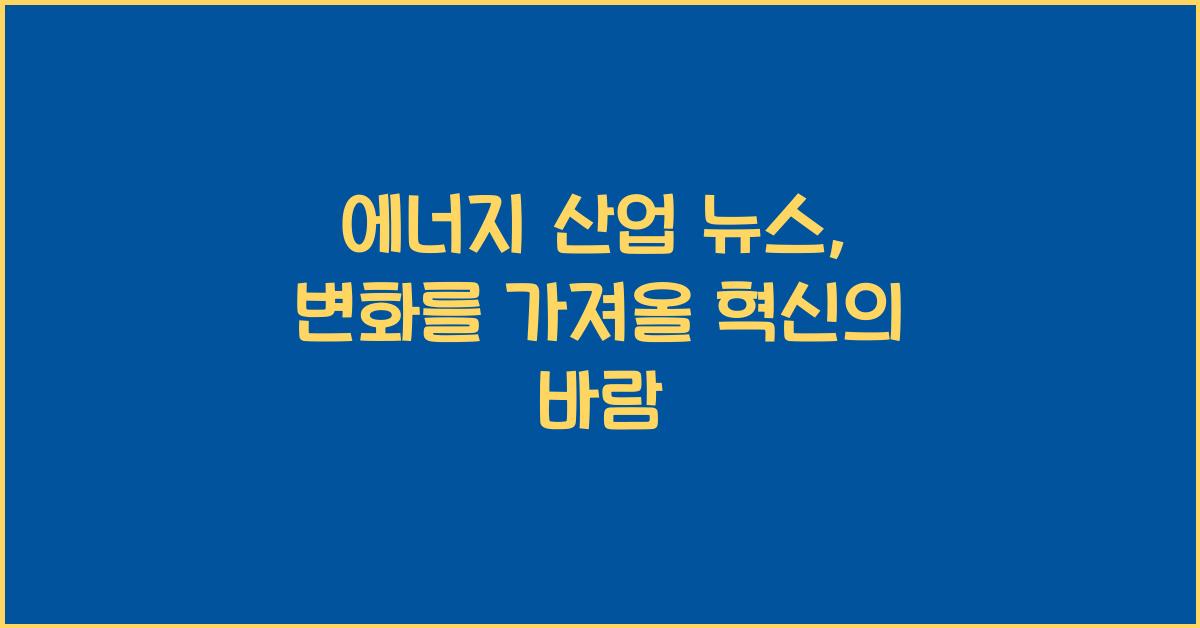 에너지 산업 뉴스, 변화를 가져올 혁신의 바람
