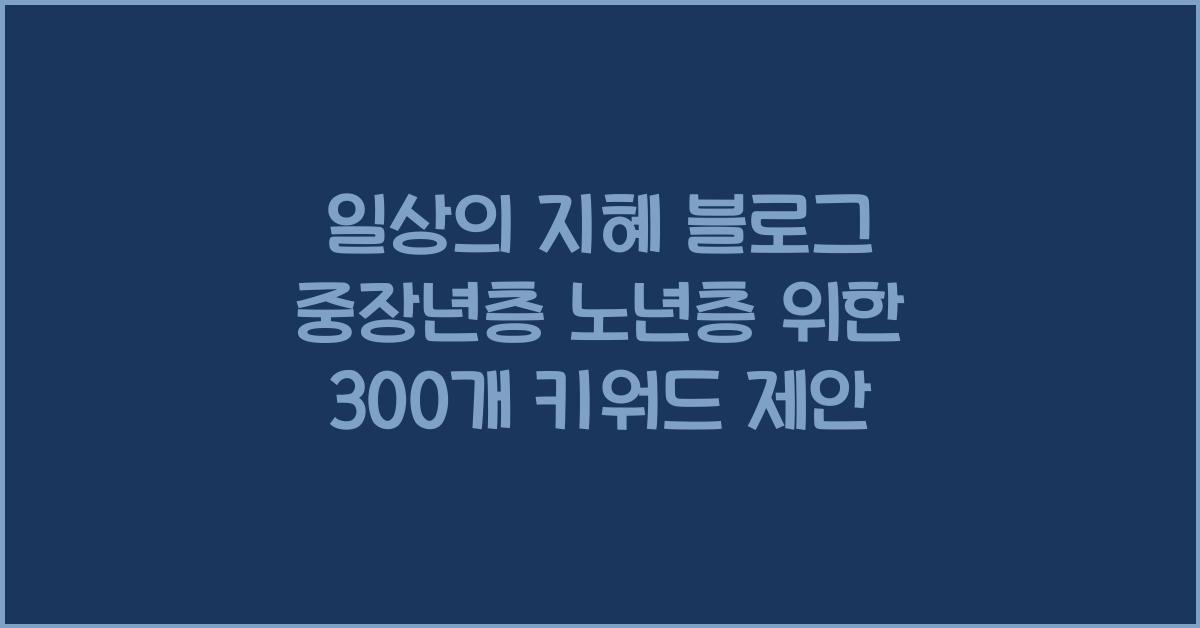 중장년층과 노년층을 위한 일상의 지혜 블로그에 적합한 300개의 키워드를 다양한 카테고리로 나누어 제공합니다. 이 키워드들은 실질적인 정보와 지혜를 제공하며, 방문자가 필요한 정보를 쉽게 찾을 수 있게 돕습니다.